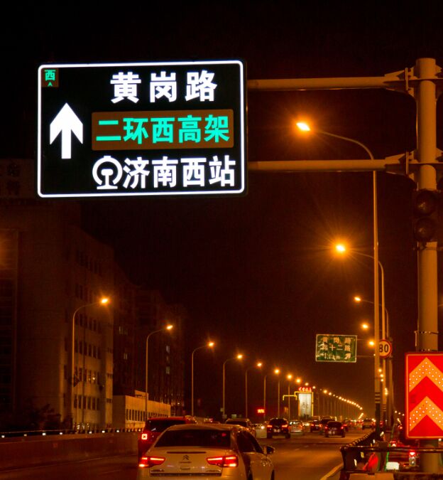 經(jīng)常開車的朋友都知道,我們在路上行駛,除了要借助導航系統(tǒng)來指導到達目的地的行駛路徑,還需要通過及時查看交通標志(指路、禁令、警告等),以確認、了解相關(guān)道路信息、交通管制信息和交通危險源信息,故交通標志對我們?nèi)粘q{駛出行至關(guān)重要。傳統(tǒng)交通標志又稱“逆反射交通標志”,是采用鋁版外貼反光膜制作而成,在夜晚或光照不佳的環(huán)境中,需要依賴汽車遠光燈照射才能被動發(fā)光,即“照射-反光、不照射—黑暗”簡單的邏輯。