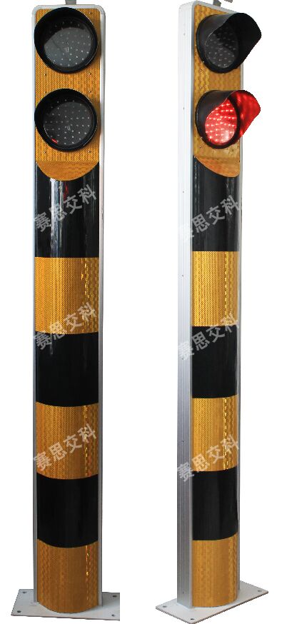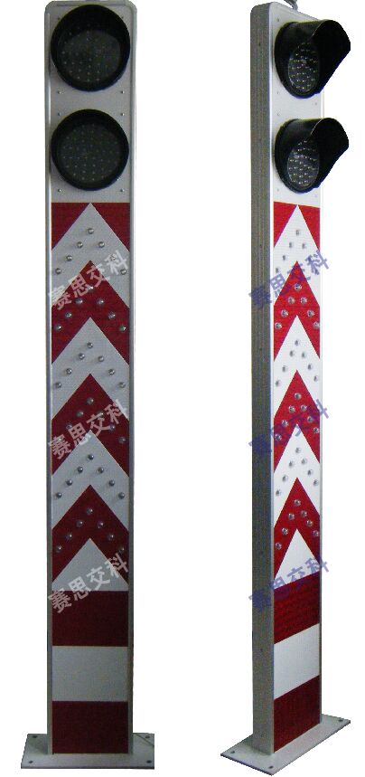 2、基本說明:一體式柱體結(jié)構(gòu),標(biāo)志版面圖案中設(shè)置紅滿屏燈、紅滿屏燈,交替閃爍,柱體上設(shè)置警示發(fā)光管,采用太陽能蓄電池供電,設(shè)置于危險路段分道、高架匝道上下口等。