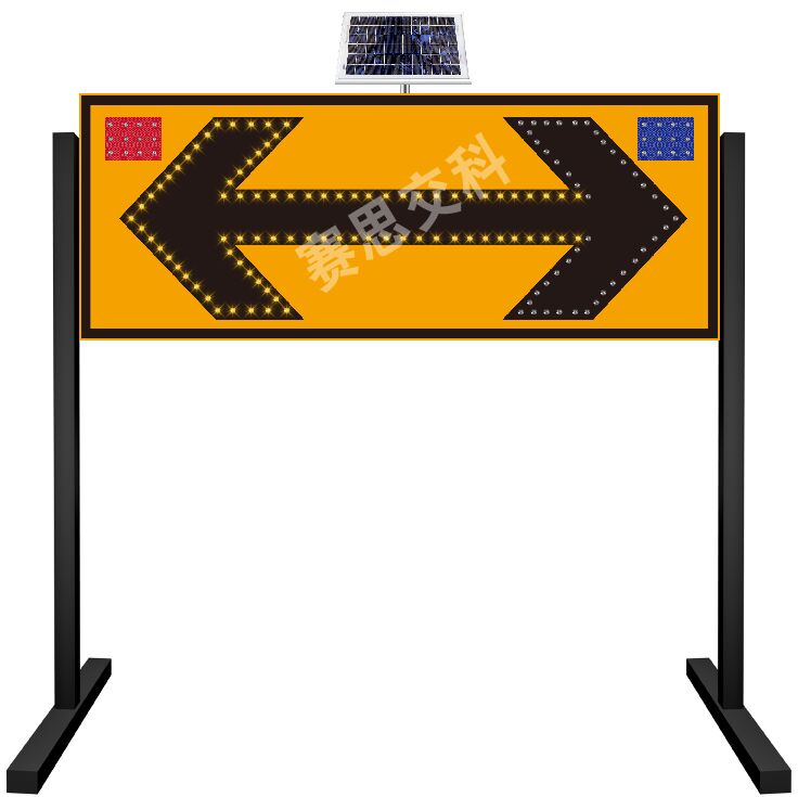 1、工藝描述:采用鋁板材質(zhì),左右各嵌入紅藍(lán)簡易爆閃燈,設(shè)置雙向箭頭標(biāo)識,嵌入LED高亮發(fā)光管,采用太陽能供電方式,實(shí)現(xiàn)主動發(fā)光功能。