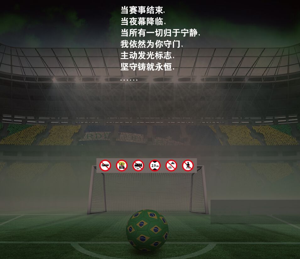 主題:當(dāng)賽事結(jié)束后,球門仍在那里為你敞開;當(dāng)夜深后,發(fā)光標(biāo)志仍在默默守護(hù)安全。