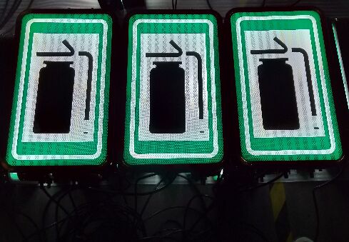 在高速路、快速路及偏遠的農(nóng)村路,常常因為無法提供供電電源,部分耗電較大的內(nèi)置照明類指路主動發(fā)光標志無法安裝,本款“大型指路類點陣型主動led發(fā)光標志”,屬于“led發(fā)光標志”范疇,因其耗電相對較少,可采用太陽能蓄電池供電方式,滿足標志發(fā)光電能供應(yīng),常常被運用在上述路段、區(qū)域。