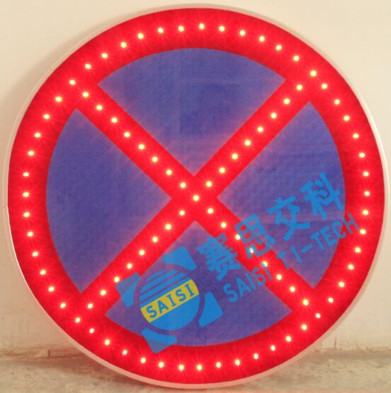 禁令類道路交通發(fā)光標(biāo)志牌,其主要功能為宣告路段或區(qū)域內(nèi),通行車輛的屬性、駕駛行為、通行軌跡的行政管理指令。如:“限制速度標(biāo)志”、“禁左標(biāo)志”、“禁停標(biāo)志”、“禁止鳴笛標(biāo)志”、“禁止超車標(biāo)志”、“限制高度標(biāo)志”、“限制貨車通行標(biāo)志”等。其形狀通常是圓形、單面八角形或等邊的自上而下的三角線,其形狀通常是白色底部、紅色圓圈、紅色斜桿和黑色圖案,"禁止停車標(biāo)志"為藍(lán)色底部、紅色圓圈、紅色斜桿。該類標(biāo)志,通常選用“全透面板型主動發(fā)光標(biāo)志”、“外置點陣型主動發(fā)光標(biāo)志”等類型。