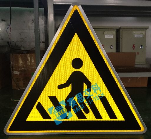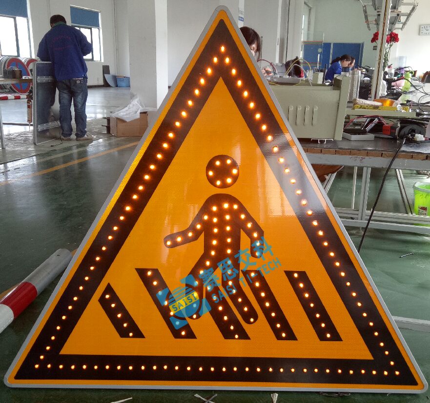 (3)注意行人發(fā)光警告標(biāo)志(輔標(biāo)"有人過街、注意禮讓")