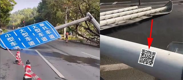 倒塌的交通設(shè)施可以通過二維碼及時反饋問題