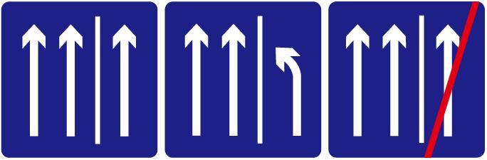 說(shuō)明:表示該處硬路肩允許車(chē)輛通行,上左圖設(shè)置于起點(diǎn);上中圖設(shè)置于即將結(jié)束處,提示盡快合流;上右圖設(shè)置于終點(diǎn)處。