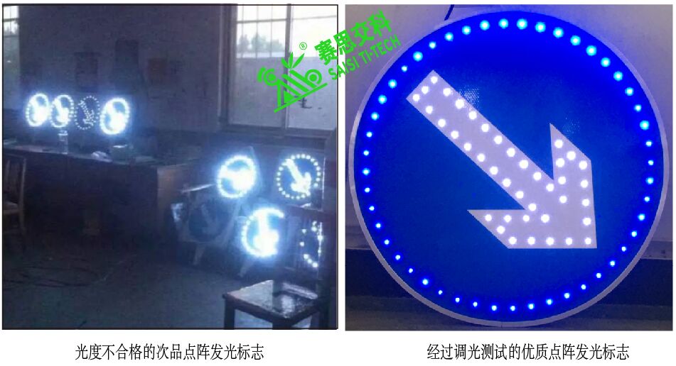 不僅是非生產業(yè)內的客戶,甚至有些從事發(fā)光標志生產不久的廠家,都想當然地認為“主動發(fā)光標志不就是能發(fā)光的標志嘛!給標志裝上LED發(fā)光管就是發(fā)光標志!”,而我要說的是:“led發(fā)光管+標志牌 ≠ 主動發(fā)光標志;能發(fā)光的標志,不一定算是主動發(fā)光標志??!”,主動發(fā)光標志作為重要的交通語言發(fā)光載體,其光源特性,不同于照明功能的路燈,也不同于警示功能的爆閃燈,其屬于光信息功能范疇,其光強要在人眼視認的舒適區(qū)間內,既不能過分追求太亮而刺眼,也不能為節(jié)省能源損耗,而過于偏暗,要達到版面亮度舒適,讓駕駛員人眼舒適地對光信息進行讀取、辨認、識別、認知,其需要根據(jù)具體版面的內容特征,和安裝位置的環(huán)境照顧,進行調光測試給出系列值,并提供動態(tài)自動修正的功能。不是毫無依據(jù),很隨意地給標志安裝上LED發(fā)光管,就可以提供給交通工程應用。
