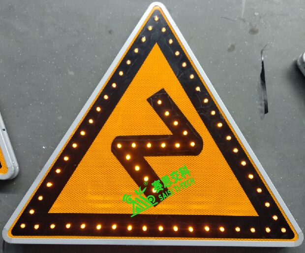 (一)提前預(yù)警坡道、彎道路段。隨著氣溫的持續(xù)降低,我國大部分地區(qū)全天候氣溫已出現(xiàn)零度以下數(shù)值,潮濕路面隨時有結(jié)冰的可能,普通道路采用降低車速管控尚可應(yīng)付,在坡道、彎道等路段,由于道路冰凝現(xiàn)象出現(xiàn),路面形成低摩擦系數(shù)的鏡面特征,緊急情況下的車輛制動已無法如平常一樣奏效,駕駛及制動預(yù)期已大打折扣,這將大大催生車輛在爬坡時倒溜、轉(zhuǎn)彎時側(cè)滑、危險情況下的制動距離增大等現(xiàn)象的發(fā)生概率,鑒于此,需要對冬季事故易發(fā)的坡道、彎道路段,進(jìn)行提前的動態(tài)限速(能根據(jù)天氣情況,實(shí)施設(shè)定道路限速值,如下圖左)、危險警告(采用LED外置點(diǎn)陣發(fā)光,如下圖左),增強(qiáng)路段司機(jī)的安全駕駛意識。