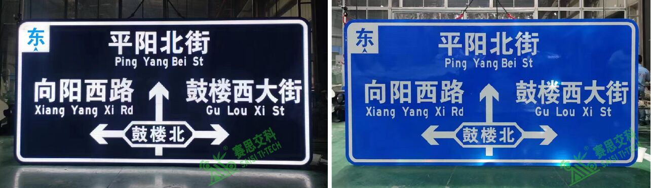 背透式主動發(fā)光標(biāo)志,是一種內(nèi)置照明標(biāo)志,即通過內(nèi)置光源照射,光源從標(biāo)志面版層的后背穿過(pass through),增強(qiáng)標(biāo)志版面關(guān)鍵信息的亮度,來提升標(biāo)志視認(rèn)的一種發(fā)光標(biāo)志制作工藝。背透式發(fā)光標(biāo)志,按其面板層的發(fā)光面積占比大小,又分為“半透型”和“全透型”兩款。半透型背透式主動發(fā)光標(biāo)志,其面板僅增強(qiáng)了關(guān)鍵信息內(nèi)容的發(fā)光,標(biāo)志底板不發(fā)光,僅保留了逆反射功能,其優(yōu)點(diǎn)在于標(biāo)志視認(rèn)的對比度強(qiáng);全透型背透式主動發(fā)光標(biāo)志,其整個面板層都發(fā)光,也同時保留不發(fā)光時的逆反射功能,其優(yōu)點(diǎn)在于標(biāo)志整體的亮化效果更醒目。