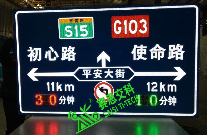 III.根據(jù)道路等級及功能需要,確定標(biāo)志的發(fā)光或反光工藝。不同標(biāo)志類型,選擇不同的標(biāo)志發(fā)光類型,通常:大型指路指示旅游類標(biāo)志牌,采用“外置LED點(diǎn)陣型主動發(fā)光標(biāo)志”,或半透面板型主動發(fā)光標(biāo)志;小型禁令、警告類標(biāo)志采用外置LED點(diǎn)陣型發(fā)光標(biāo)志,或全透面板型主動發(fā)光標(biāo)志。以下場景特別適用主動發(fā)光標(biāo)志:(1)事故易發(fā)生路段;(2)地下隧道;(3)重要交通樞紐;(4)重點(diǎn)交通路段。(5)觀察視角范圍有限路段;(6)對標(biāo)志的遠(yuǎn)距離視認(rèn)有特殊要求的路段;(7)對標(biāo)志的易捕捉性有特殊要求的路斷。