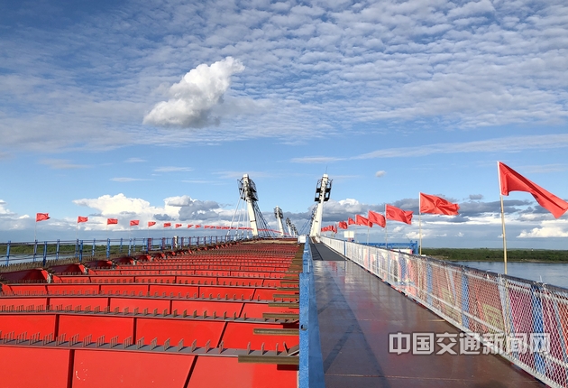 中俄兩國有關(guān)部門負(fù)責(zé)人,大橋建設(shè)者參加合龍儀式。大橋建成后,預(yù)計到2020年客運量可達(dá)140萬人次,貨運量可達(dá)300萬噸,將成為促進(jìn)邊境地區(qū)繁榮發(fā)展的新橋梁、鞏固和深化傳統(tǒng)友誼的新紐帶。