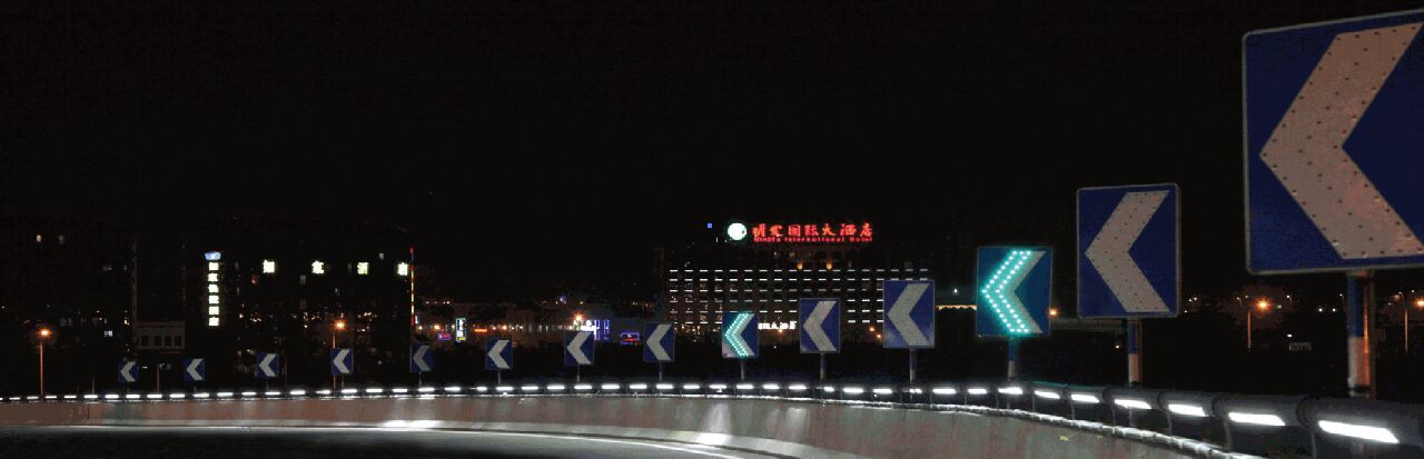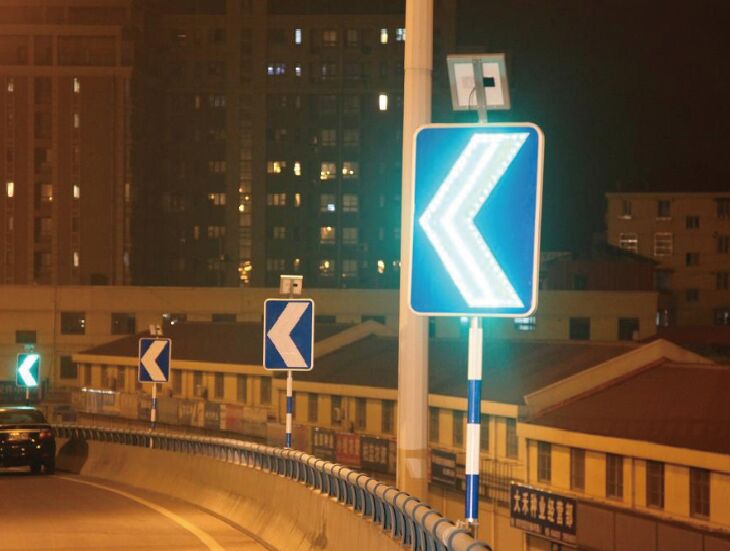 1、在彎道處設(shè)置點陣主動發(fā)光彎道誘導(dǎo)標志,采用太陽能供電,無需外接市政電源,通過LED動態(tài)“追逐式”閃爍,有效指示道路線形變化動態(tài)軌跡、保障車輛在彎道行駛的安全性。標志采用自動光控技術(shù),不僅具備普通標志的逆反射功能,同時,在雨霧霾等惡劣天氣狀況下也具有良好的穿透性,能被遠距離視認,降低了曲線路段視認性不足所帶來的安全隱患;逆光條件下,強烈陽光照射使人難以看清標志信息內(nèi)容,易造成交通事故,主動發(fā)光彎道誘導(dǎo)標志起到正面補光的作用,同時,標志美觀、方便安裝維修。