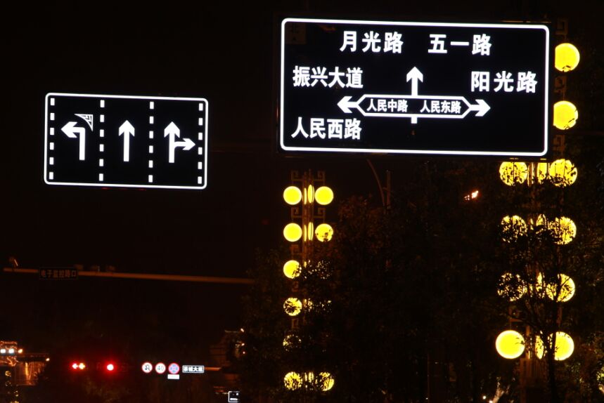 標(biāo)志底板不發(fā)光,文字、符號、邊框等發(fā)光,筆畫飽滿,視覺柔和,特別在周邊暗環(huán)境中,具備極強(qiáng)的視認(rèn)效果。
