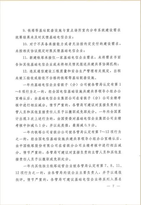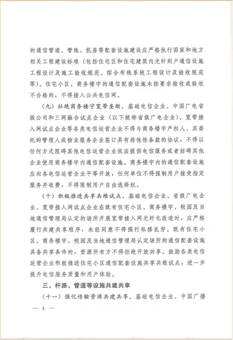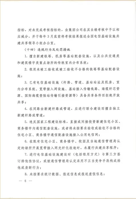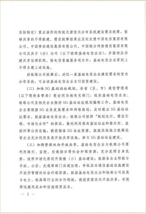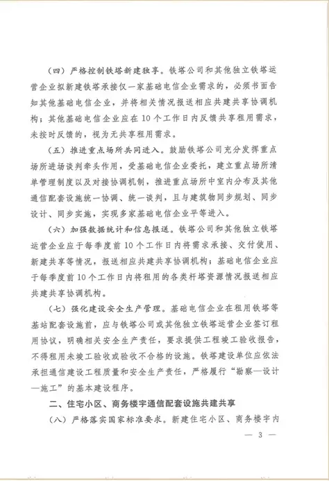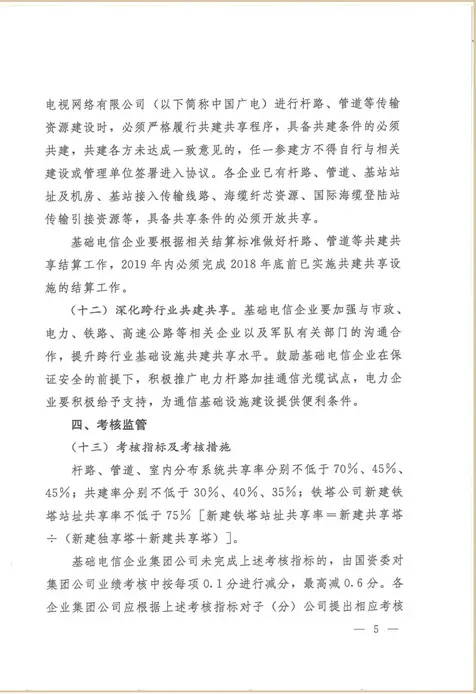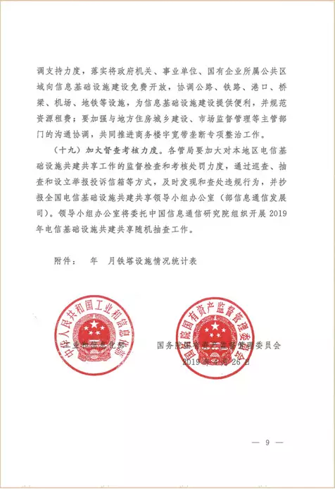 近日,《工業(yè)和信息化部》與《國務(wù)院國有資產(chǎn)監(jiān)督管理委員會》聯(lián)合發(fā)文《關(guān)于2019年推進(jìn)電信基礎(chǔ)設(shè)施共建共享的實(shí)施意見》(工信部聯(lián)通函(2019)123號),文件針對:全省、自治州、直轄市通信管理局、中國電信集團(tuán)有限公司、中國移動通信集團(tuán)有限公司、中國聯(lián)合網(wǎng)絡(luò)通信集團(tuán)有限公司、國家電網(wǎng)有限公司、中國南方電網(wǎng)有限責(zé)任公司、中國廣播網(wǎng)絡(luò)有限公司、中國鐵塔股份有限公司等涉及通訊業(yè)務(wù)的公司,文件提出:2019年,電信基礎(chǔ)設(shè)施共建共享工作將以持續(xù)提升資源共建共享水平、有力支撐行業(yè)高質(zhì)量發(fā)展為目標(biāo),強(qiáng)化統(tǒng)籌集約建設(shè)和存量資源共享,積極拓展跨行業(yè)共建共享范圍,保障通信基礎(chǔ)設(shè)施建設(shè)通行權(quán)和公平進(jìn)入,促進(jìn)行業(yè)減低增效。
